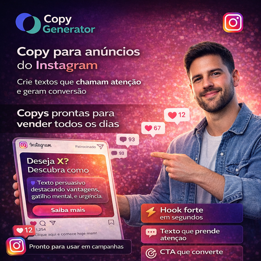 Criar anúncios no Instagram que convertem não depende só de design bonito — o que realmente vende é a copy. Você vai entender como estruturar textos persuasivos para anúncios e como utilizar o Copy Generator para gerar copies otimizadas em poucos segundos, prontas para escalar resultados.